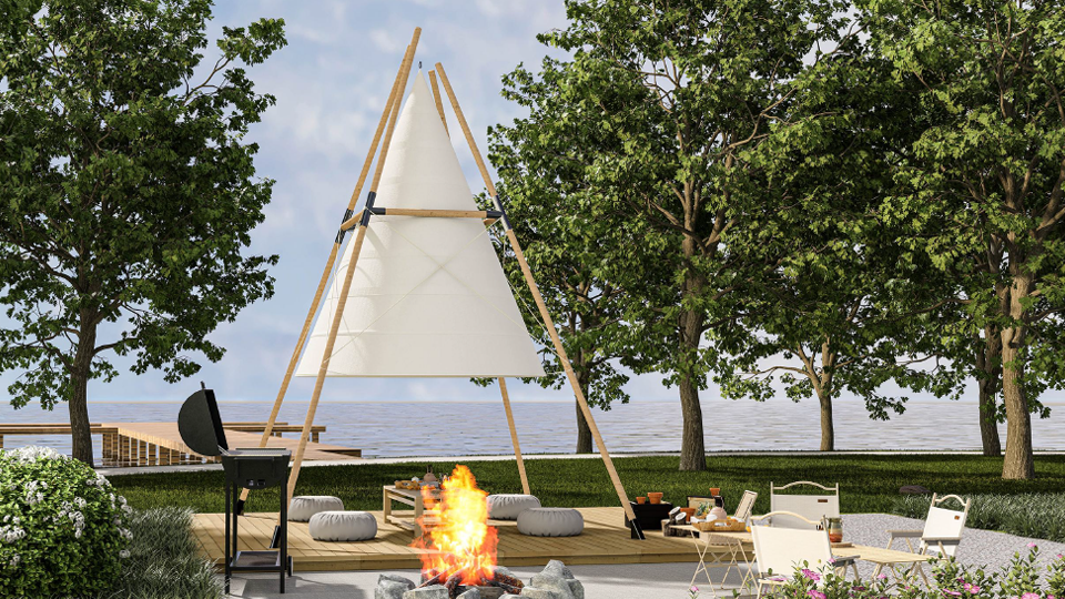 Whether it's to contemplate the reflection of water in a serene conversation or to share stories around a campfire, this tent combines sustainable design with cozy comfort, promoting an authentic and memorable socializing experience in any landscape.